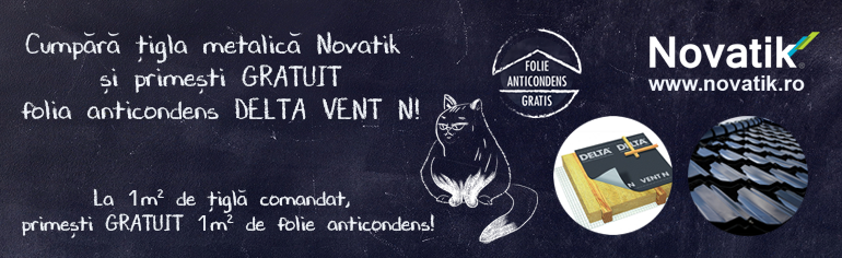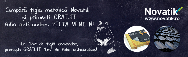 Toamna aceasta, la achizitionarea tiglei metalice Novatik, primesti GRATUIT folia anticondens Delta NEO Vent. Promotie valabila numai in sistem complet (tigla si accesorii Novatik, folie anticondens Delta si sistem drenaj Novatik).