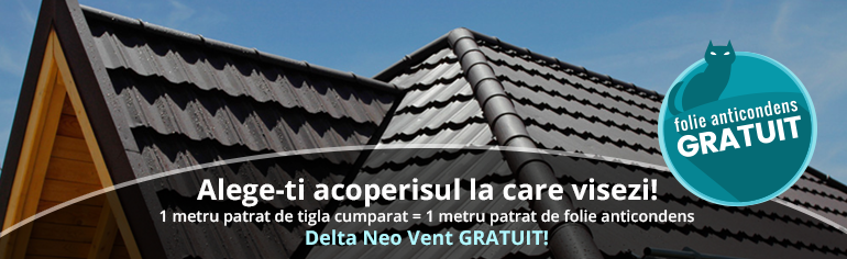 Pana pe 31 iulie primesti GRATUIT folia anticondens Delta NEO. VENT, pentru fiecare metru patrat de tigla Novatik cumparat (profilele Practik, Matt, Avangarde, Click sau Click S).